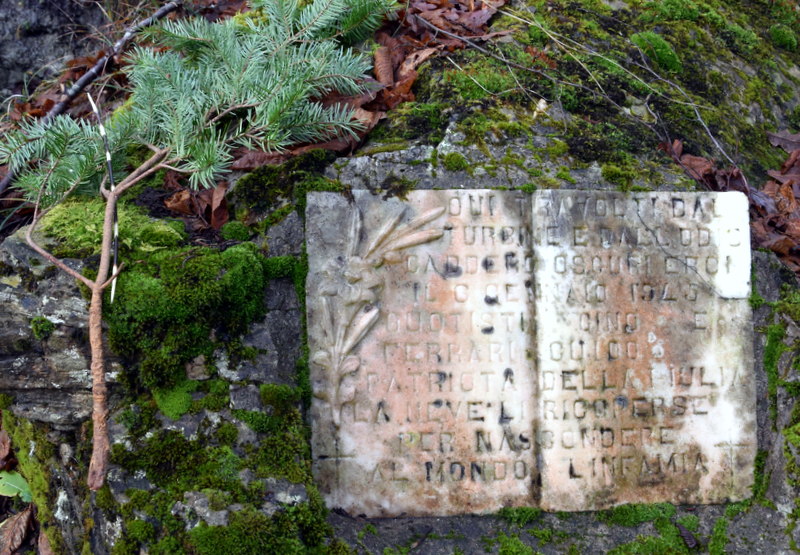 Così come quel trattino sul foglio sposa le due date e perpetua nel tempo il suo significato unificatore, allo stesso modo i nomi delle sette vittime incise sul cippo meritano di essere pronunciati come si legge uno stato di famiglia: tutti assieme e uniti, figli provenienti dalla stessa stirpe assetata di democrazia, accomunati dal tragico destino di cui è stato testimone questo fazzoletto di terra insanguinato: Giovanni Castagnoli (Michele), Vittorio Catinella (Ratà), Gaspare Ferrari (Gaspà), Guido Ferrari (Guido), Gino Quotisti (Manza), Armando Tedaldi (Bubba), Domenico Terroni (Gherry).
