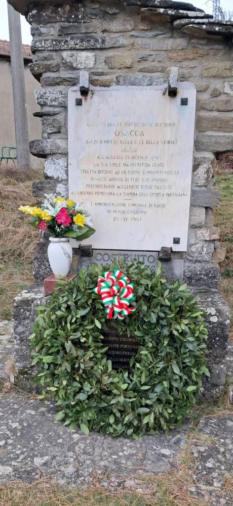 La mattina del 25 dicembre 1943 la popolazione di Osacca e i partigiani si apprestavano a celebrare insieme, in decoro e povertà, il Santo Natale; quand’ecco giungere trafelata, da un gruppo di case più in basso, una donna che reca, sgomenta, la notizia: «Da Noveglia stanno salendo dei fascisti armati, sono molti, un centinaio e forse più ». «Che fare? ». La decisione in quel momento non è solo dei partigiani, ma di tutto il paese che ne resterà fatalmente coinvolto. C’è, se si vuole, tutto il tempo per allontanarsi fra i boschi e far perdere le proprie tracce, ma troppo vivo è in tutti il desiderio di dare una lezione a chi si è sempre mosso in nome della violenza e della tracotanza; i partigiani sono pronti e decisi, gli uomini di Osacca chiedono che siano date loro delle armi, daran man forte ai patrioti; le donne assentono e s’apprestano a dare, anch’esse, la loro collaborazione: segnaleranno agli uomini appostati l’arrivo e l’ubicazione del nemico.