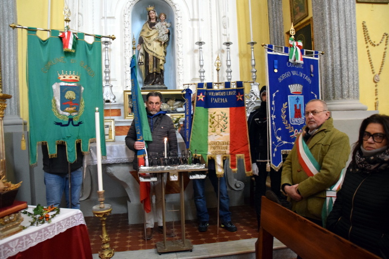 Desidero anche ricordare il sostegno, con forme e modalità varie, mostrato dalle istituzioni alle varie iniziative comunali; – la Regione Emilia Romagna, rappresentata dal consigliere Matteo Daffadà, che ringrazio; – la Provincia di Parma; – i Comuni della valle per la partecipazione condivisa agli eventi celebrativi destinati alla Resistenza. Nell’occasione porgo il mio saluto a Roberto Bertorelli, assessore del Comune di Bardi, con il quale condividiamo questa commemorazione, al Sindaco di Compiano Francesco Mariani, col quale inaugureremo tra poco il nuovo percorso del CAI Santa Donna-Strela a cui ho già fatto cenno; saluto gli altri amministratori locali presenti e rivolgo il mio deferente saluto alle Forze dell’Ordine, impegnate ogni giorno a tutela della sicurezza del nostro territorio.